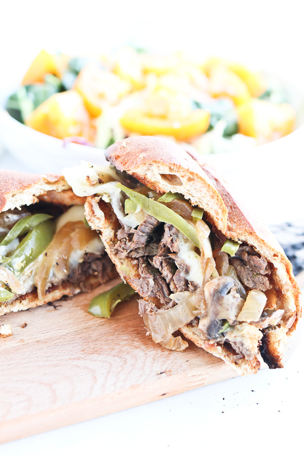 In the mood for a truly melt-in-your-mouth Philly Cheesesteak? Look no further — this is THE ONE! Tender, fall-apart steak in a garlicky, beefy broth, served with peppers and onions — this will be the best Philly you’ve ever experienced. Want it more classic? Make a creamy cheese sauce while it pressure cooks and spoon it generously over the top of your sandwich.